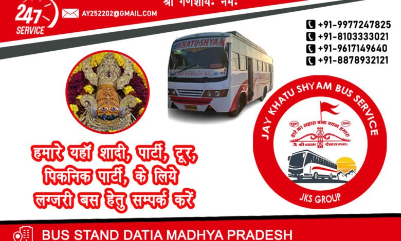 शादीपार्टी ,तीर्थ यात्रा, या पिकनिक के अलावा अन्य प्रोग्राम के लिए, संपर्क करें खाटू श्याम ट्रैवल्स , पता बस स्टैंड दतिया, संपर्क +91 88789 32121,